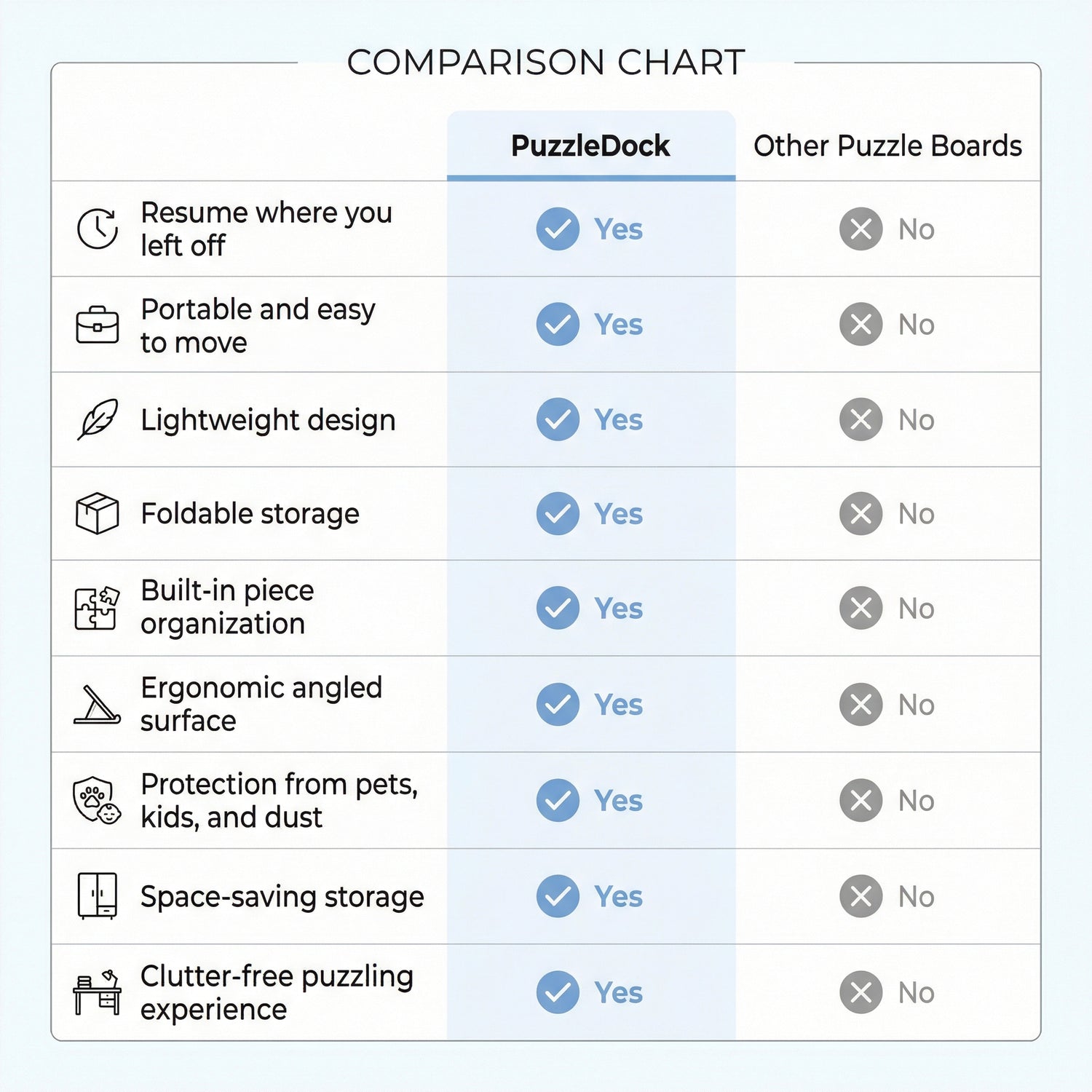 We design PuzzleDock to elevate every puzzling session — from comfort to organization. If it doesn’t meet your expectations, you can shop with confidence knowing you’re protected. Enjoy a 30-day trial, and if you’re not fully satisfied, you may return or exchange your board for a full refund. Simple, fair, and hassle-free.